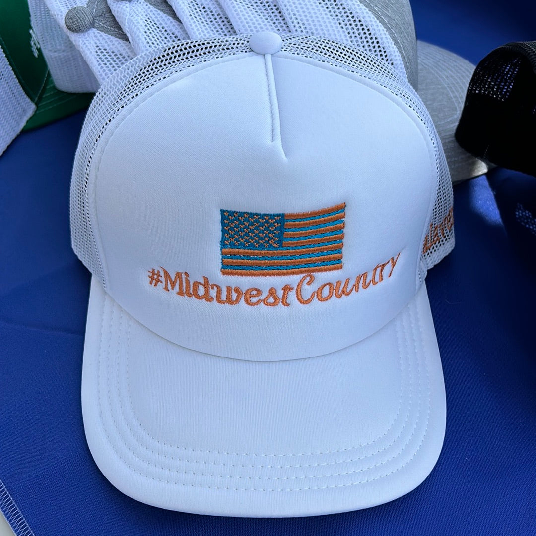 white puffy SnapBack #MidwestCountry with @alavender21 on the side