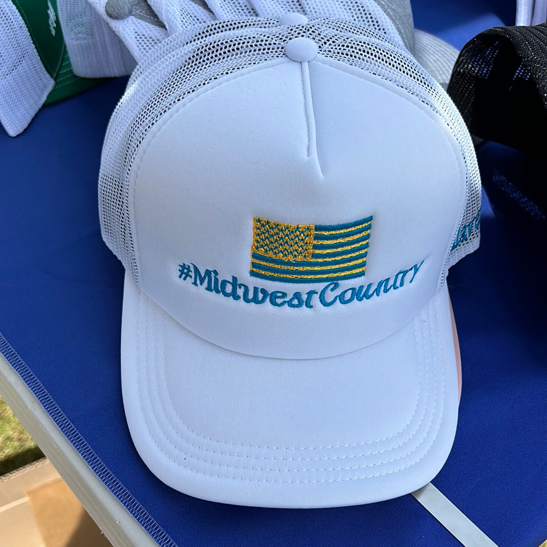 white puffy SnapBack #MidwestCountry with @alavender21 on the side